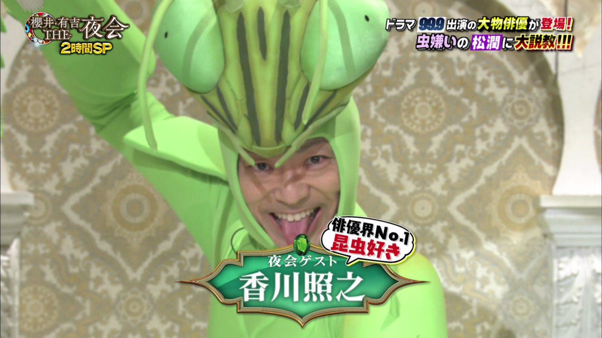 カマキリ先生 香川照之 が局を越えて大暴れ Nhkの衣装を着てtbsに出演し Tbsの予算でハナカマキリの衣装を作る 2ページ目 Togetter